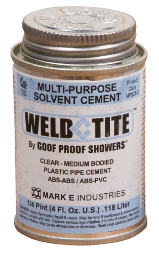 This Multi-Purpose glue is for both pressure/non-pressure type fittings available in 4oz cans only with applicator-in-lid and used in gluing PVC to PVC, PVC to ABS and ABS to ABS